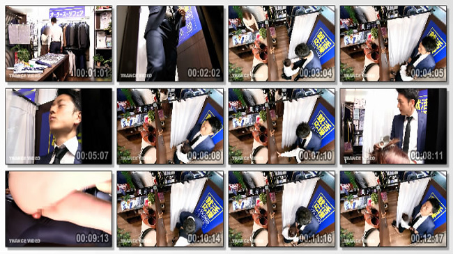 彼女と訪れた紳士服専門店で痴女店員とまさかの試着室FUCK!?採寸するフリをしてカーテン越しにフェラ!思わず勃起する彼氏は雰囲気に飲まれてそのまま試挿膣!